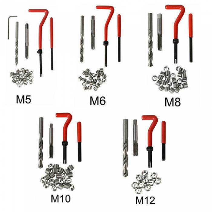 Набор для восстановления поврежденной резьбы предназначен для работы с поврежденными резьбовыми отверстиями размеров M5, M6, M8, M10 и M12. Инструменты, входящие в набор, с легкостью исправят проблему сорвавшейся резьбы и справляются как со сквозными, так и с глухими отверстиями в различных крепежных соединениях и элементах.