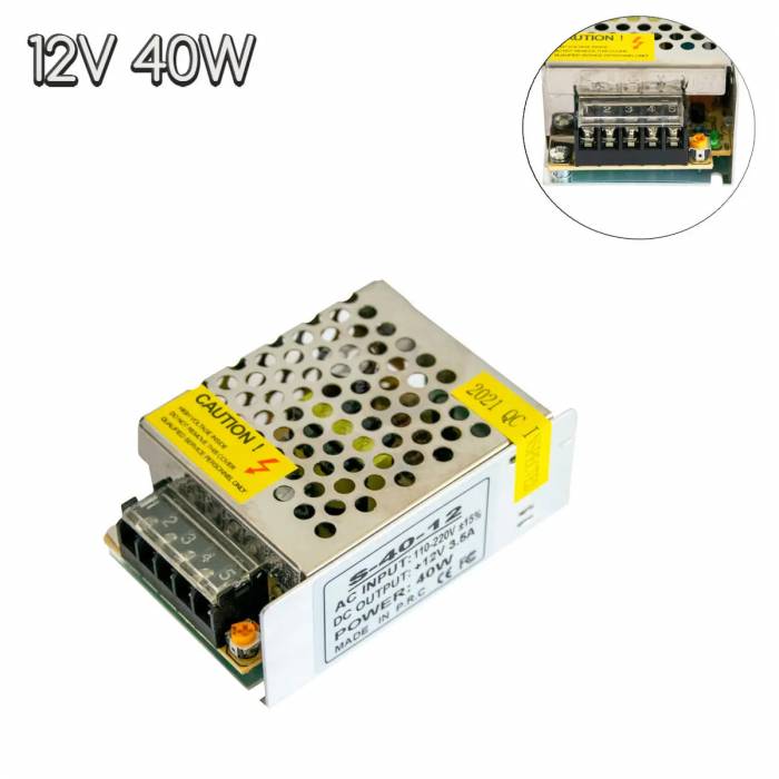 Чаще всего мы сталкиваемся с блоками питания на 12V, на ряду с 5V и 19V они все же остаются одними из самых популярных. Обусловлено это тем, что 12 V является безопасным напряжением и при этом позволяет передавать довольно большую мощность. От такого блока питания можно питать светодиодные ленты для декоративной подсветки и освещения, системы видеонаблюдения, небольшие компьютеры, а также разные граверы, 3D принтеры, маршрутизаторы и т.д. S-40-12 один из устройств линейки с малой мощностью 40 W.