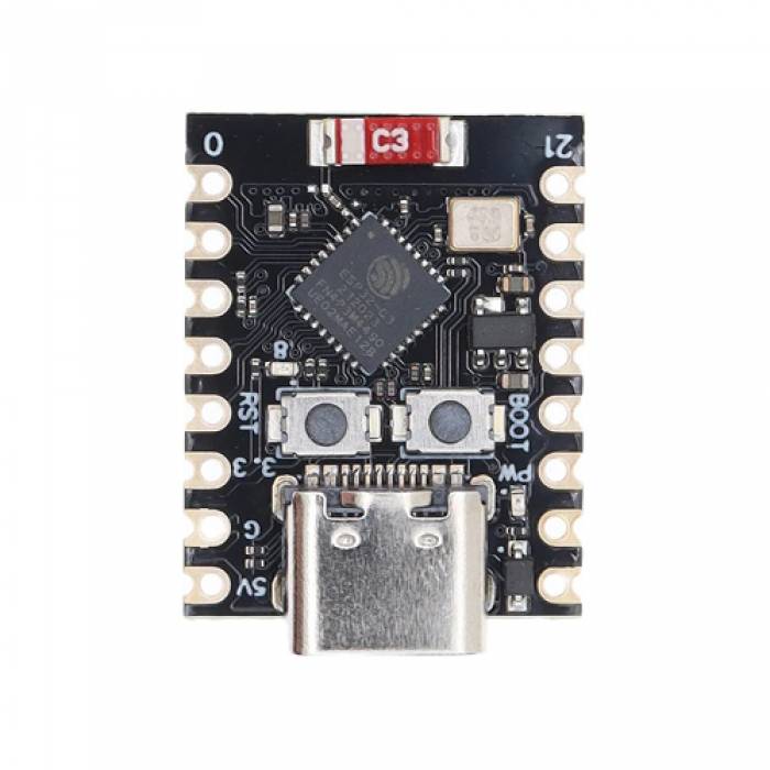 ESP32-C3 SuperMini – компактная плата для разработки устройств IoT, носимой электроники а также умного дома. Основана на новом чипе Espressif ESP32-C3. Поддерживается два режима подключения (как через Bluetooth, так и по Wi-Fi), а сама плата имеет сверхкомпактный размер.