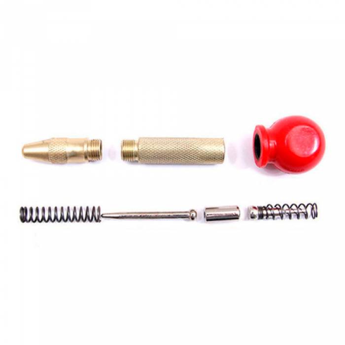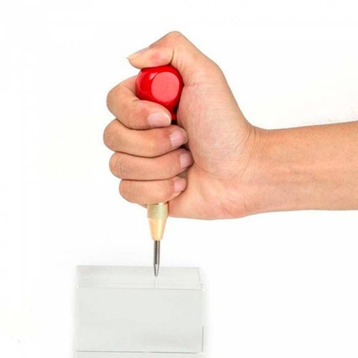 Пружинный автоматический кернер для удобной разметки пластика, дерева, металла одной рукой без применения ударных инструментов.