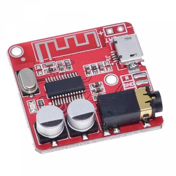 Достаточно простое подключение: подать питание на плату, а затем подключить к AUX-выходу гарнитуру либо усилитель. После чего подключится к модулю со смартфона, ПК или другого устройства c функцией Bluetooth.
