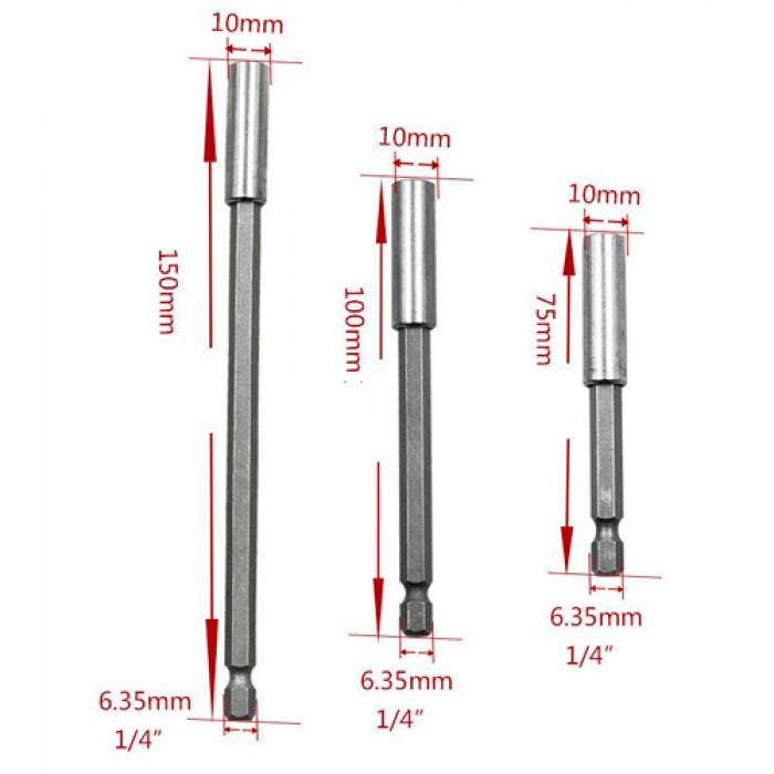 Набор из трёх магнитных держателей бит для работы с шуруповертами и сверлами. Состоит из намагниченной головки с посадочным отверстием под биту и шестигранного хвостовика, который зажимается в патроне шуруповерта. Позволит значительно сэкономить время и облегчить работу мастеру.