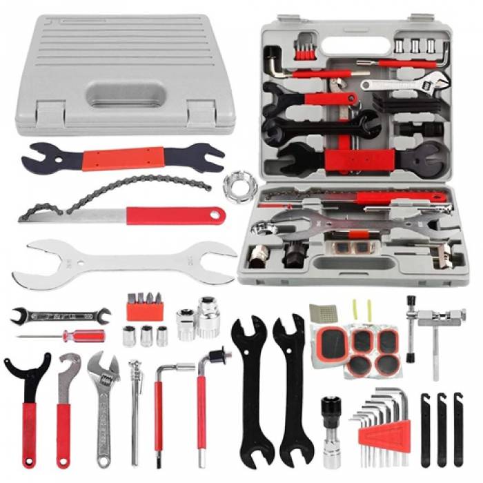 Большой профессиональный набор для обслуживания и ремонта велосипеда – отличный выбор для велолюбителей, которые любят обслуживать своей двухколесный транспорт самостоятельно. Включает в себя все необходимые инструменты, которые удобно размещены в кейсе для удобного хранения или транспортировки. Набор подходит для большинства типов велосипедов, включая городские, шоссейные, MTB и горные модели.