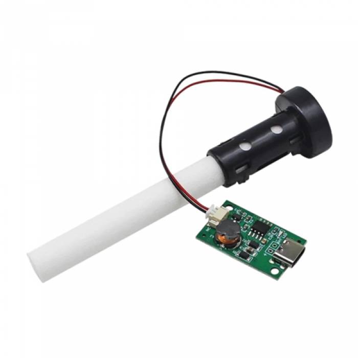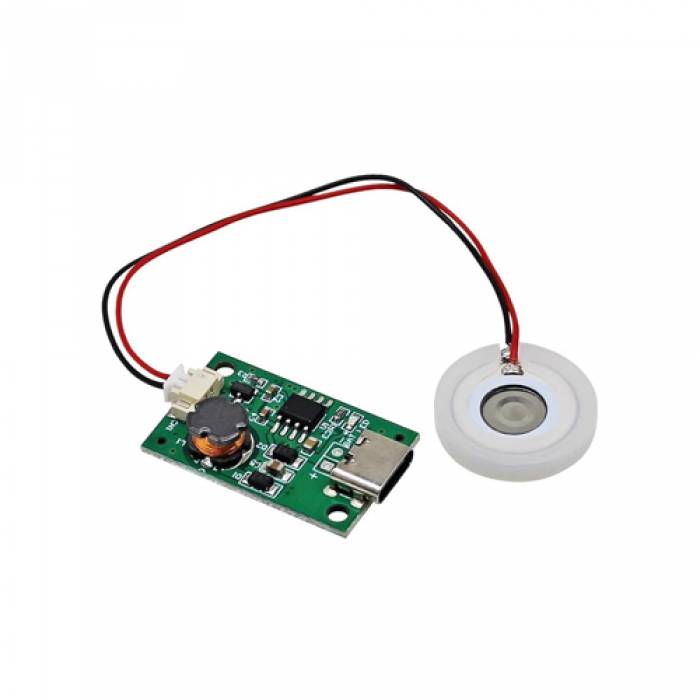 Обновленный набор для самостоятельной сборки компактного увлажнителя воздуха. Состоит из платы управления, фильтра и мембраны ультразвукового излучателя. Плата имеет современный разъем питания Type-C, что позволяет использовать любую стандартную зарядку от телефона для питания платы. Под воздействием ультразвуковых волн вода превращается в водяной туман, а воздух в помещении, где работает увлажнитель, насыщается микроскопическими частичками воды, тем самым очищая и освежая воздух от пыли.