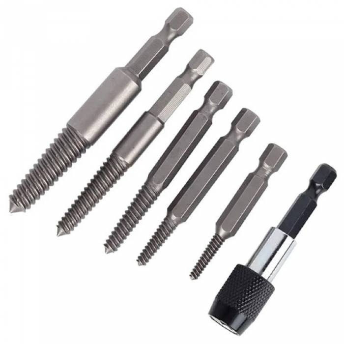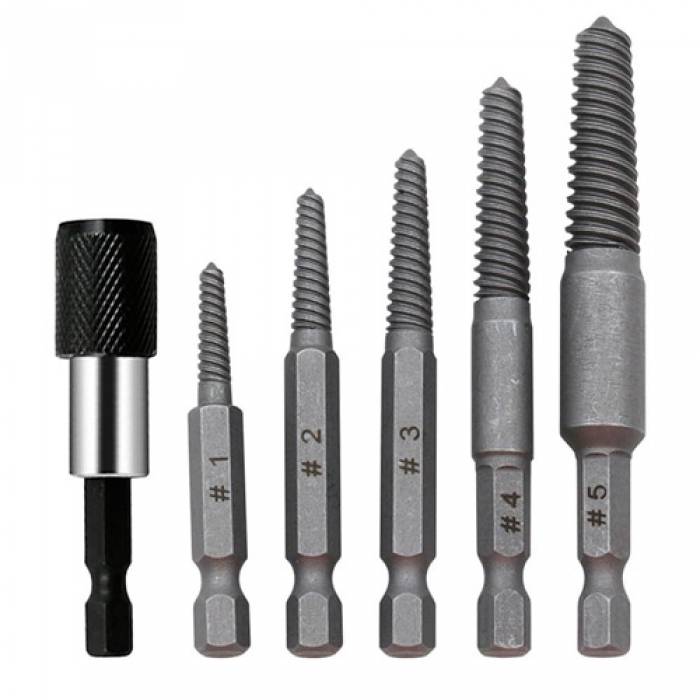 Набор из 5 винтовых экстракторов и магнитного удлинителя для извлечения поврежденных винтов, болтов.