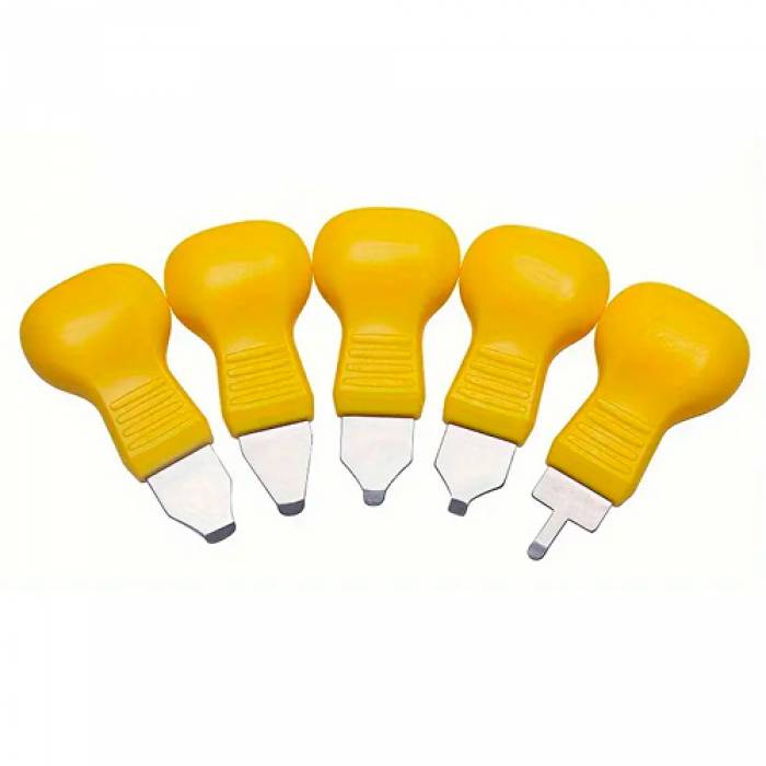 Набор из пяти лопаток с различными стальными наконечниками для открывания крышек часов, разборки корпусов электронного оборудования, ключей, брелков и т.д. Позволит выполнять любой мелкий ремонт без царапин и повреждений деталей.