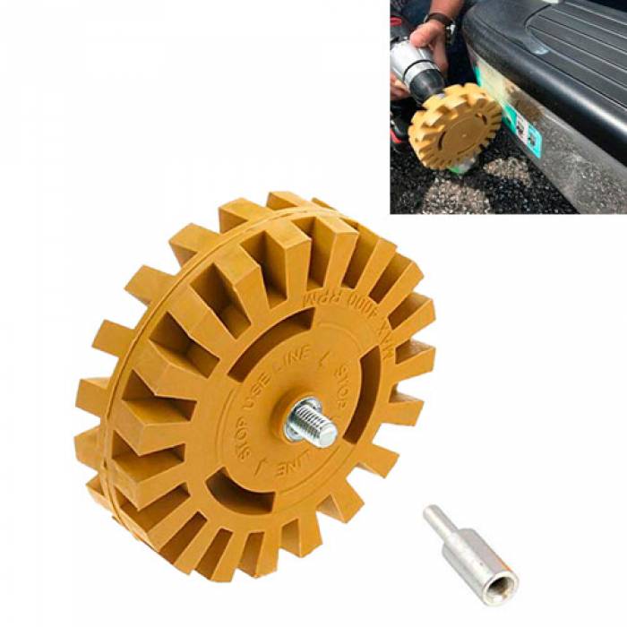 Насадка на дрель/шуруповерт в форме резинового диска для удаления скотча, наклеек, клея и аппликаций без повреждения покрытия.