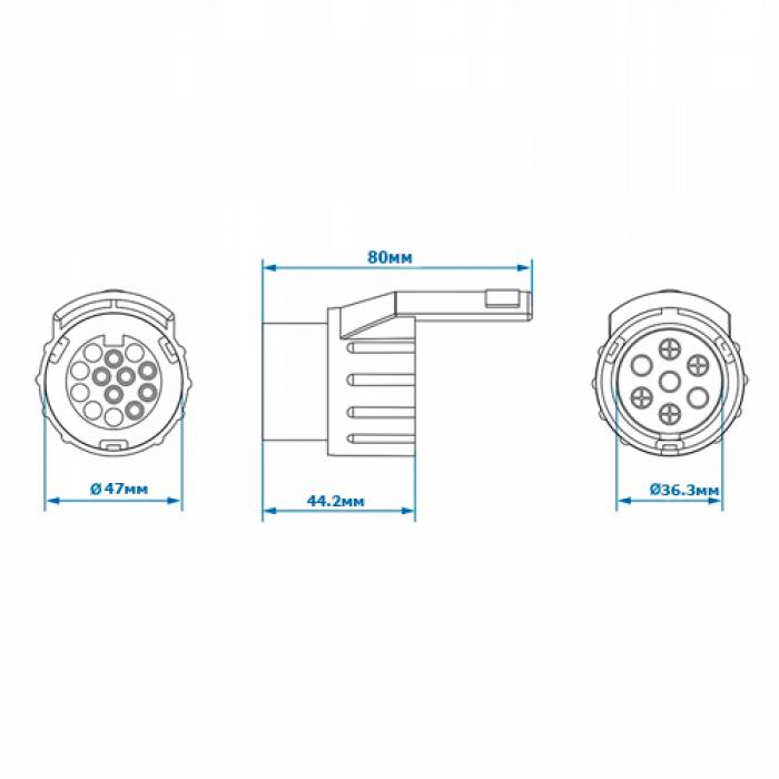 Адаптер с переходом с 7-контактов на 13 поддерживает напряжение 12 В и обеспечивает надежное соединение между прицепом и автомобилем.