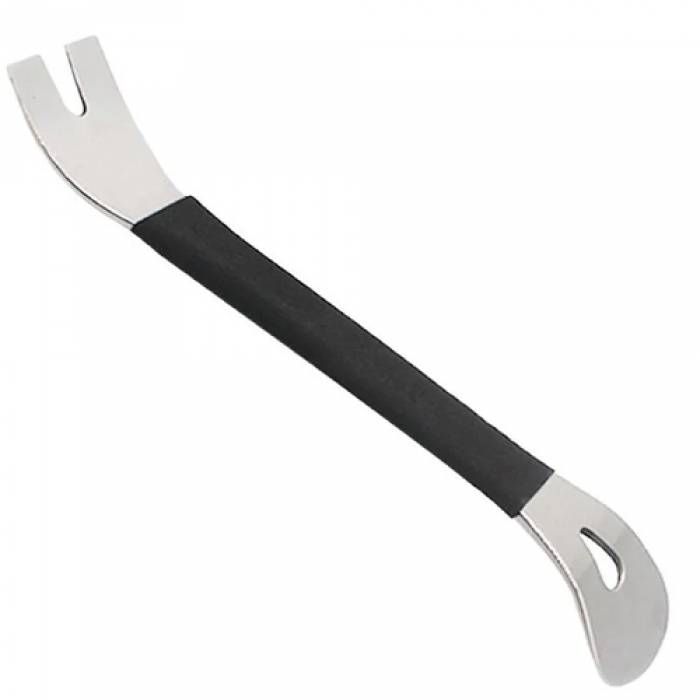Металлический съемник клипс и пистонов, которые используются в обшивке салона автомобиля. Инструмент позволит безопасно (без риска повреждения) и быстро демонтировать декоративную пластиковую, тканевую или металлическую обшивку. Съемник имеет удобную ручку, которая способствует быстрому рабочему процессу, и отлично подходит для замены сломанных клипс, демонтажа деталей интерьера, проведения арматурных работ, монтажа автомобильной аудиосистемы и т.п.
