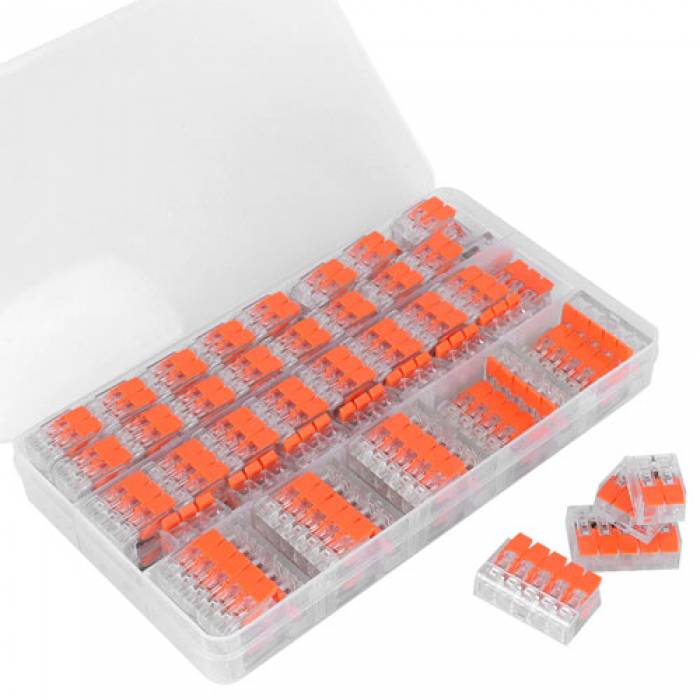 Багаторазові клемні колодки з натискними важелями для швидкого, надійного та красивого з'єднання двох проводів.