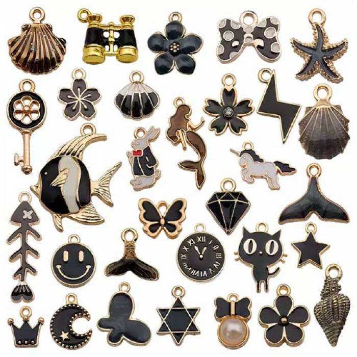 Набір із приблизно 100 шармиків — металевих підвісок, покритих емаллю для рукоділля.