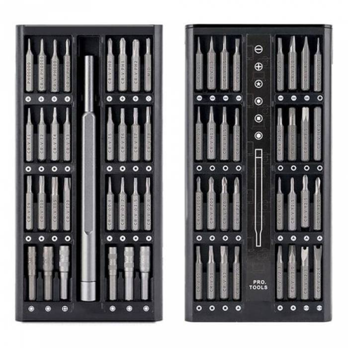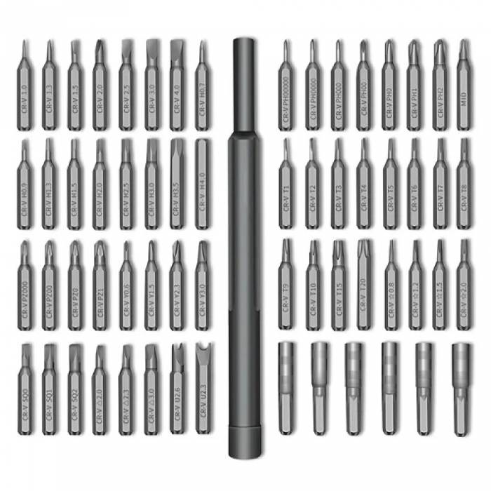 Багатофункціональна магнітна викрутка з 62 різними прецизійними насадками — це універсальне рішення для широкого спектра ремонтних завдань. Постачається в пластиковому кейсі, який має висувну конструкцію й намагнічені пази для біт, що дасть змогу утримувати насадки у своїх відсіках. Набір виготовлений із надійних і якісних матеріалів, а поворотний ковпачок на кінці ручки викрутки дасть змогу закрутити гвинтик легким рухом руки.