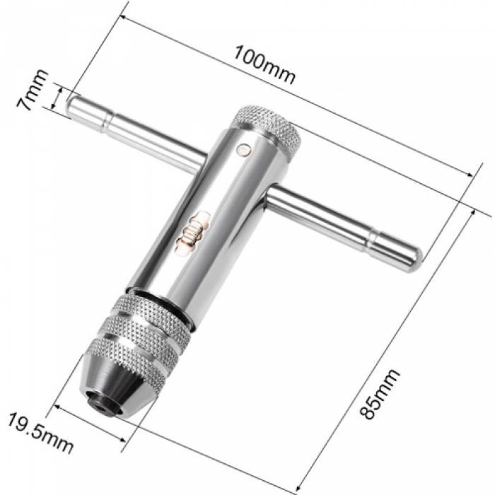 Т-образный вороток предназначен для удержания метчиков и других небольших ручных инструментов. Используется для фиксации резьбонарезного инструмента с последующим нарезанием резьбы. Отличный вариант для работ в местах с ограниченным пространством.