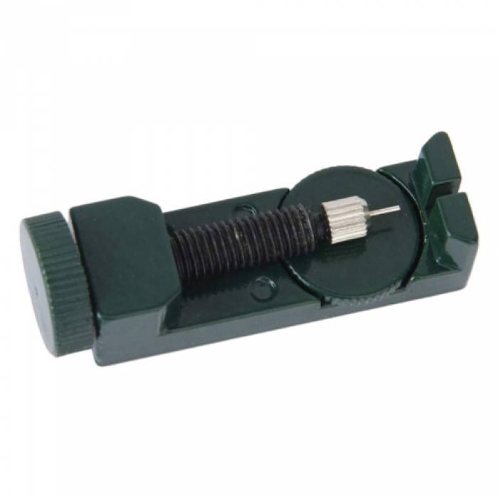 Специализированный зажим для подгонки браслета наручных часов с металлическим корпусом. Позволит быстро, без повреждений и травм отрегулировать длину браслета наручных часов, а также сэкономит время и деньги, которые необходимы для похода к часовщику. Корпус устройства имеет регулируемую винтовую струбцину, которая позволит обслужить практически любой браслет.